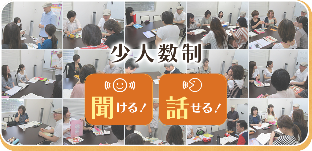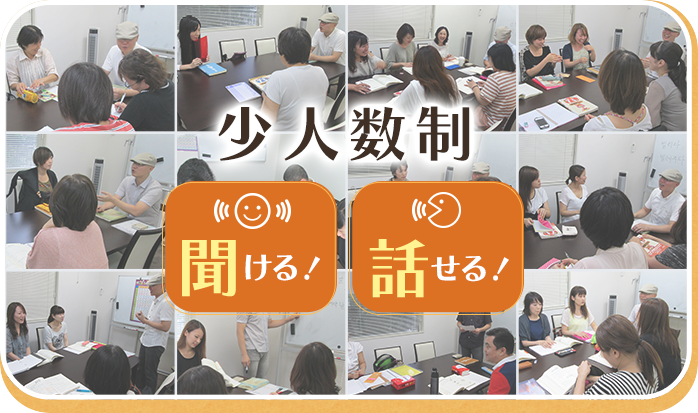 - 3~5名で口から声に出して練習しアウトプットすることを重視しています。発音も文章も先生が丁寧に細かくフォロー。